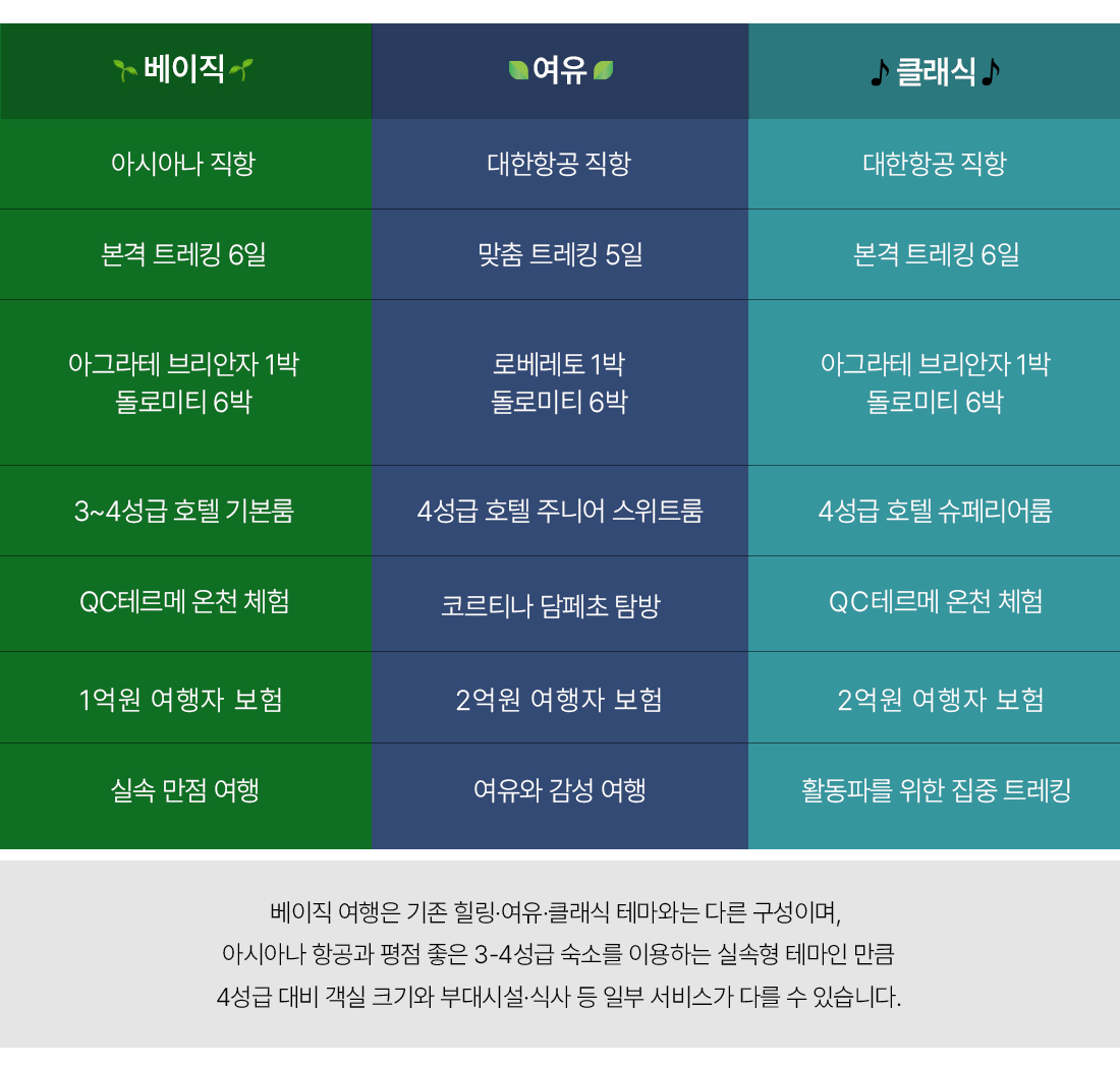돌로미티 상품 비교 포인트!