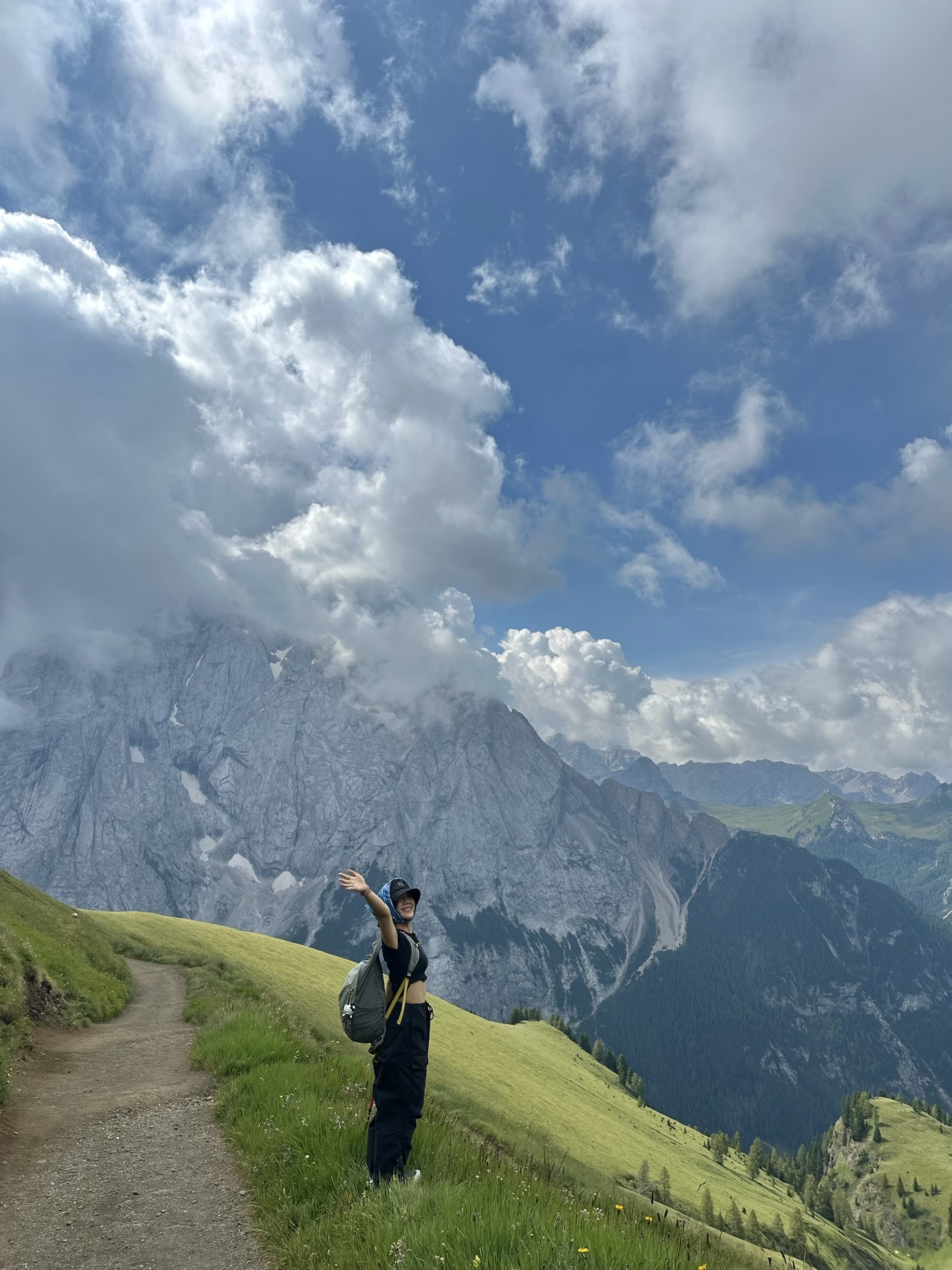 장미빛 바위의 로젠가르텐, 꽃길로 이어진 마르몰라다, 구름 위를 걷는 듯한 라가주오이, 용이 하늘로 치솟는 듯한 세체다, 그리고 구름띠를 두른 친퀘토리. 그 중에서도 가장 압권이었던 건, 장엄하게 솟아올라 하늘을 찌를 듯한 트레치메였다. 걸음을 옮길 때마다 새로운 장면이 그림처럼 펼쳐졌다.