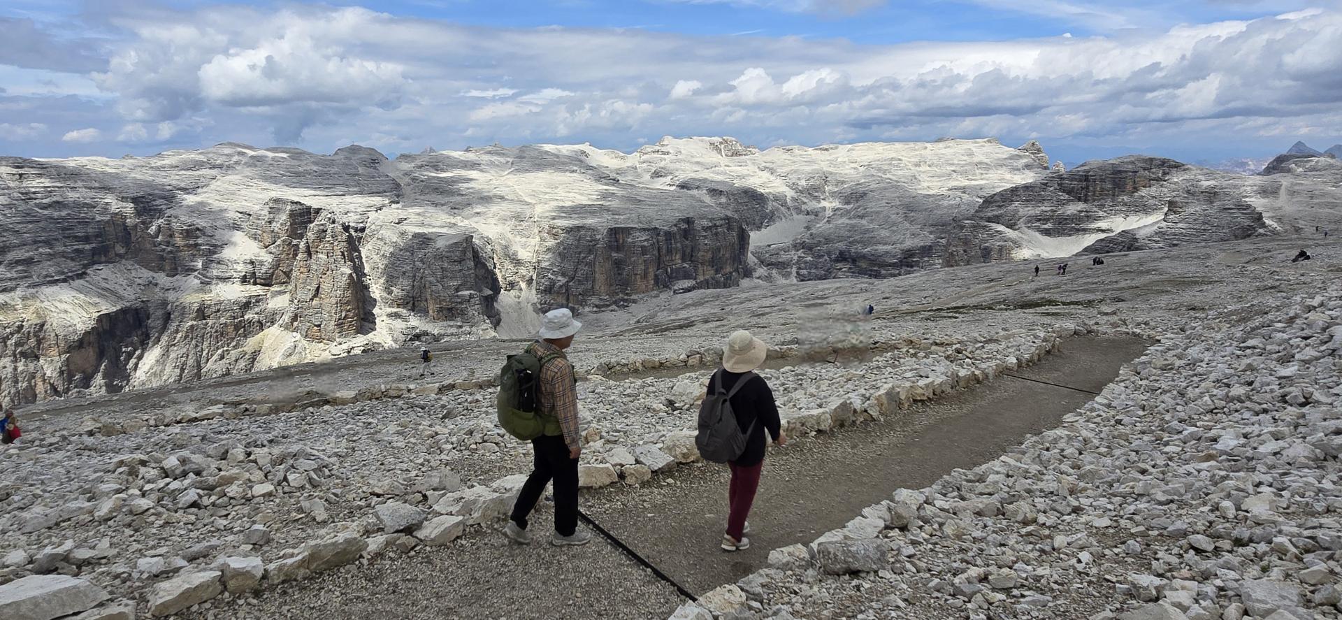 셋째 날, 드디어 기다리던 세체다 트레킹! 케이블카를 타고 올라가 파노라마 뷰를 감상하며 내려오는 길에는 숨이 막힐 듯 아름다운 야생화들이 가득했고, 내리막도 심하지 않아 부담 없이 즐길 수 있었습니다. 충분한 트레킹 시간이 주어져 꽃 사진도 많이 찍고, 여유 있게 세체다를 만끽할 수 있어 정말 좋았습니다. 이후 머물게 된 몬테 파나 호텔은 싸소 룽고 바로 아래에 위치해 있었고, 식사는 말 그대로 환상적이었습니다.